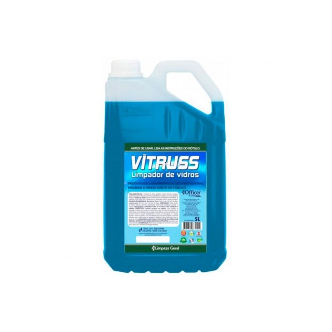 O Limpa Vidros Vitruss 5 litros garante uma limpeza rápida e eficaz contra sujeira de vidros e espelhos. Produzida a base de álcool, possui agradável perfume sem deixar resíduo, não embaça e dá brilho. Não necessita de enxague. Pode ser utilizado também em vitrines, box, pára-brisas e acrílicos.
